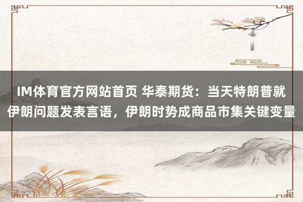 IM体育官方网站首页 华泰期货:当天特朗普就伊朗问题发表言语,伊朗时势成商品市集关键变量