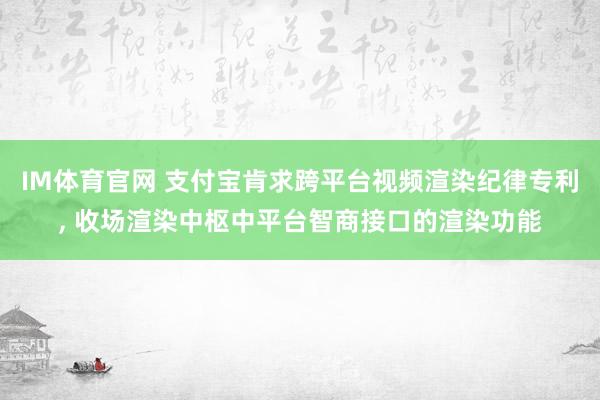 IM体育官网 支付宝肯求跨平台视频渲染纪律专利, 收场渲染中枢中平台智商接口的渲染功能