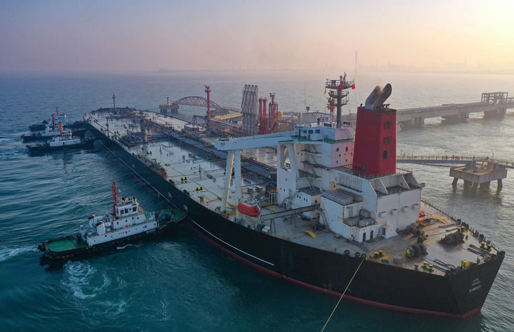 2025年12月18日,一艘装载着17.9万吨石化原辅料的船舶泊入国投洋浦油储船埠30万吨级原油泊位(无东说念主机相片)。这是海南目田买卖港正经启动全岛封关后洋浦港港口第一批通关的“零关税”石化原辅料。新华社记者 郭程 摄