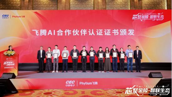 行径现场,飞扬南京研发立异中心负责启用,并为数十家整机生态厂商颁发认证文凭;中国挪动云才调中心、中电长城、诚迈科技、麒麟软件、奇安信等多家飞扬生态伙伴代表上台共享。