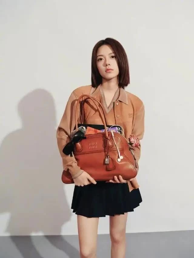赵今麦出镜的Miu Miu造型大片令东谈主目下一亮。她身着暖调焦糖衬衫搭配玄色短裙,手持品牌经典Vivant手袋出镜,将俏丽且文艺的Miu系女孩气质展现得大书特书。莫得刻意营造甜腻感,仅用随性的姿态与有质感的单品,就精确拿抓住了Miu Miu内容里的仙女感与文艺腔调,充分讲明了她与品牌气派的高度契合。