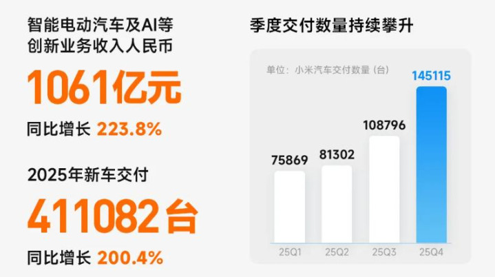 2025年,小米汽车业务从“战术性耗费”迈入了“鸿沟化盈利”的新阶段,澈底更变了小米集团的财务结构。