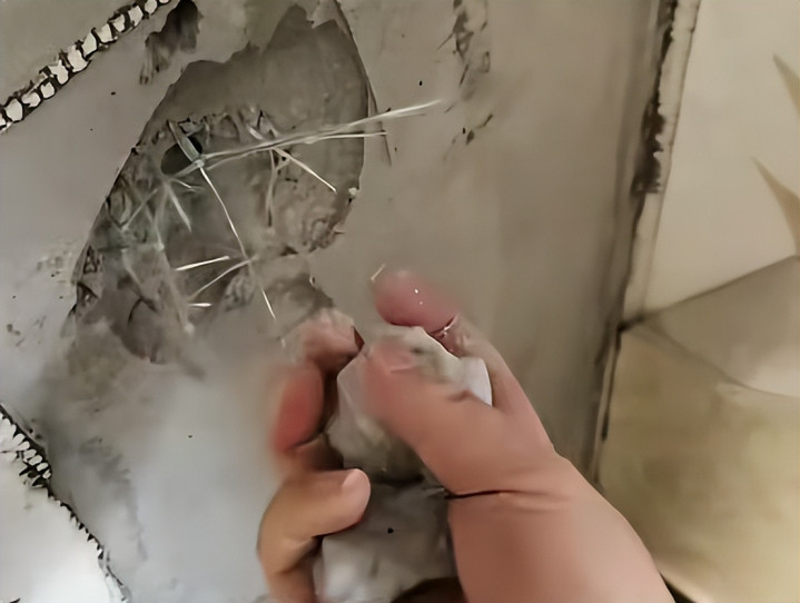 装修师父就向前摸了摸墙面窒碍的方位,抠下来了几大块墙体,用手轻轻搓几下果然造成了渣渣。