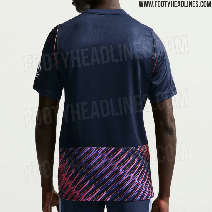 虎扑03月29日讯足球装备资讯网站FootyHeadlines独家揭秘,托特纳姆热刺26-27赛季客场球衣以黑曜石色(深舟师蓝)为底色,搭配霓虹粉、紫、橙三色的斜向锯齿线条,组成了极具活力与视觉张力的繁复图案。