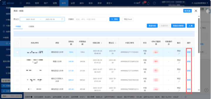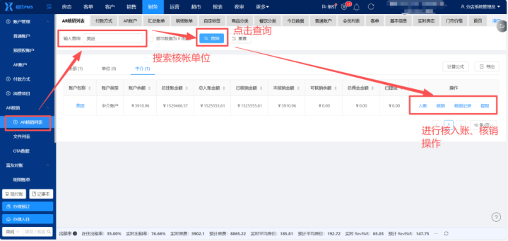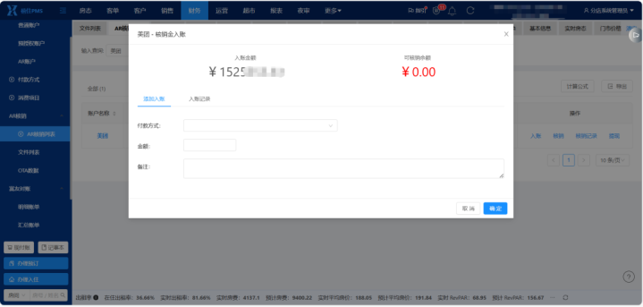 禧住云PMS「AR对账」