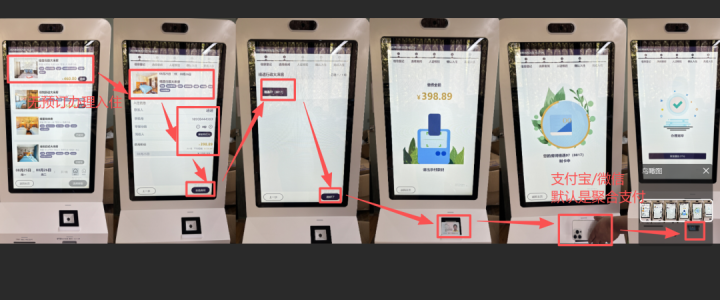 点击无预定入住--接纳入住房型--填入入住东说念主基本信息--接纳房间--身份证扫描--支付--自助机发夹