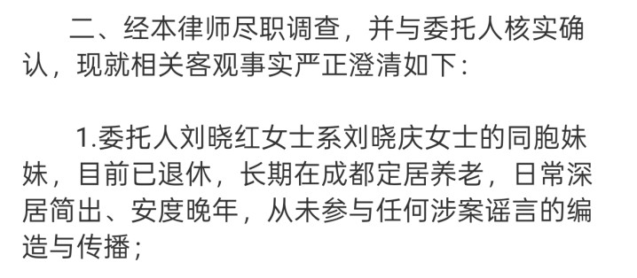 同期为我方的母亲辟谣,称我方的母亲刘晓红女士,年齿已高,多年前就假寓成都,初始养须生计了,从来莫得参与过任何责异事件。