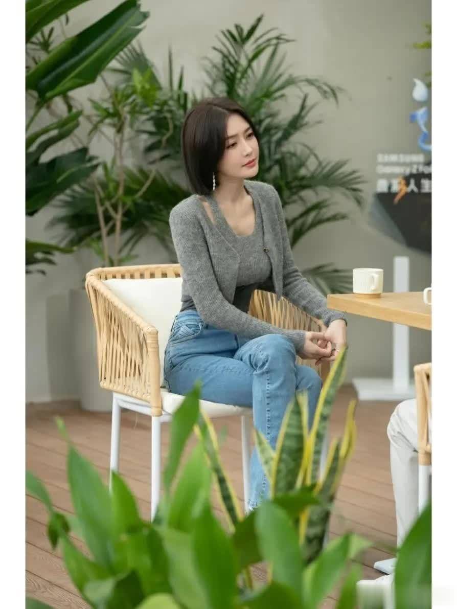 这并立搭配是“灰色 + 蓝色”的组合,和顺且具质感。上半身她挑选了一件浅灰色古道开衫,内搭同色吊带,显现若干锁骨,御寒之余不失小性感。下装搭配一条经典的蓝色直筒牛仔裤,高腰推敲将腰线擢升,IM体育官方网站首页片刻优化形体比例。灰色古道的软糯与牛仔的硬朗互相碰撞,中庸了古道的甜腻,也让牛仔增添了几分和顺。