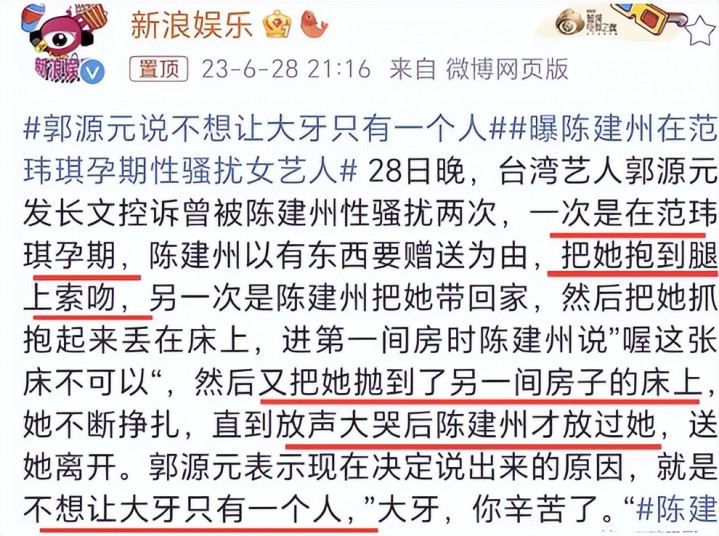 2023年,多位女艺东谈主实名指控陈建州性干扰,其中还有范玮琪我方的化妆师,细节说得有鼻子有眼,果然度极高。
