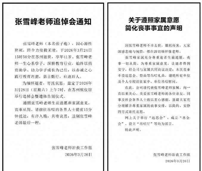 3月26日,张憨厚的后事安排被公布,通知中明确暗意:将在3月28日举行告别庆典,全程一切节约。